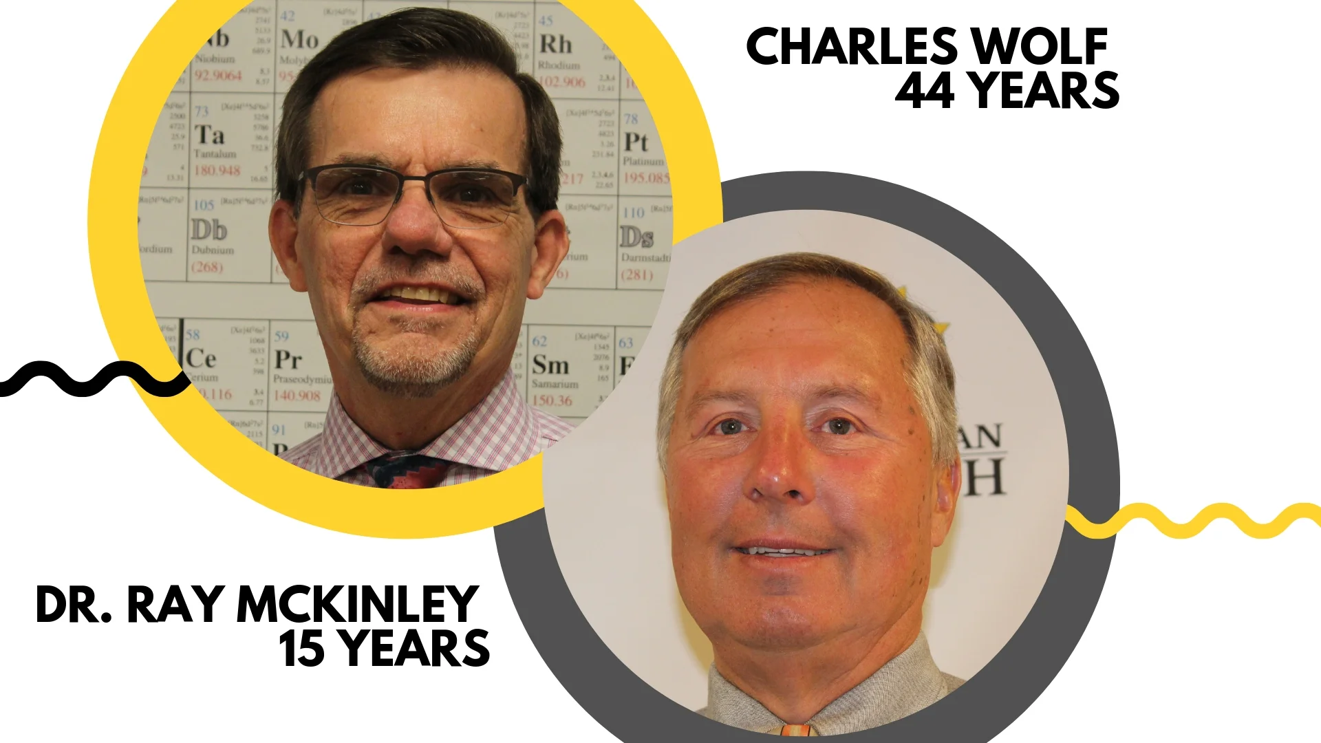 Charles Wolf will be honored for his 44 years of dedicated service and Dr. Ray McKinley will be honored for 15 years of faithful service to Lutheran North.